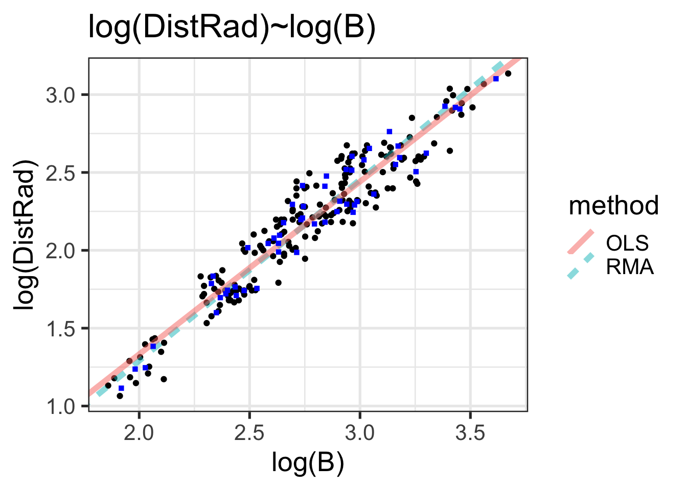 intercepts = c(RMA_model$reg[3,2], coef(OLS_model)[1]), method=c("RMA","OLS")